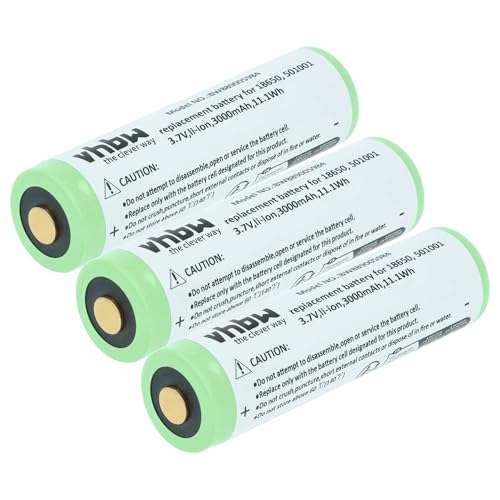 vhbw 3x Batterie compatible avec Olight S30R III, S30R II, Warrior Mini 2, Warrior Mini lampe de poche ou frontrale (3Ah, 3,7V, Li-ion)