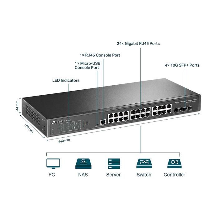 TP-Link Omada SG5428X, Géré, L3, Gigabit Ethernet (10/100/1000), Grille de montage