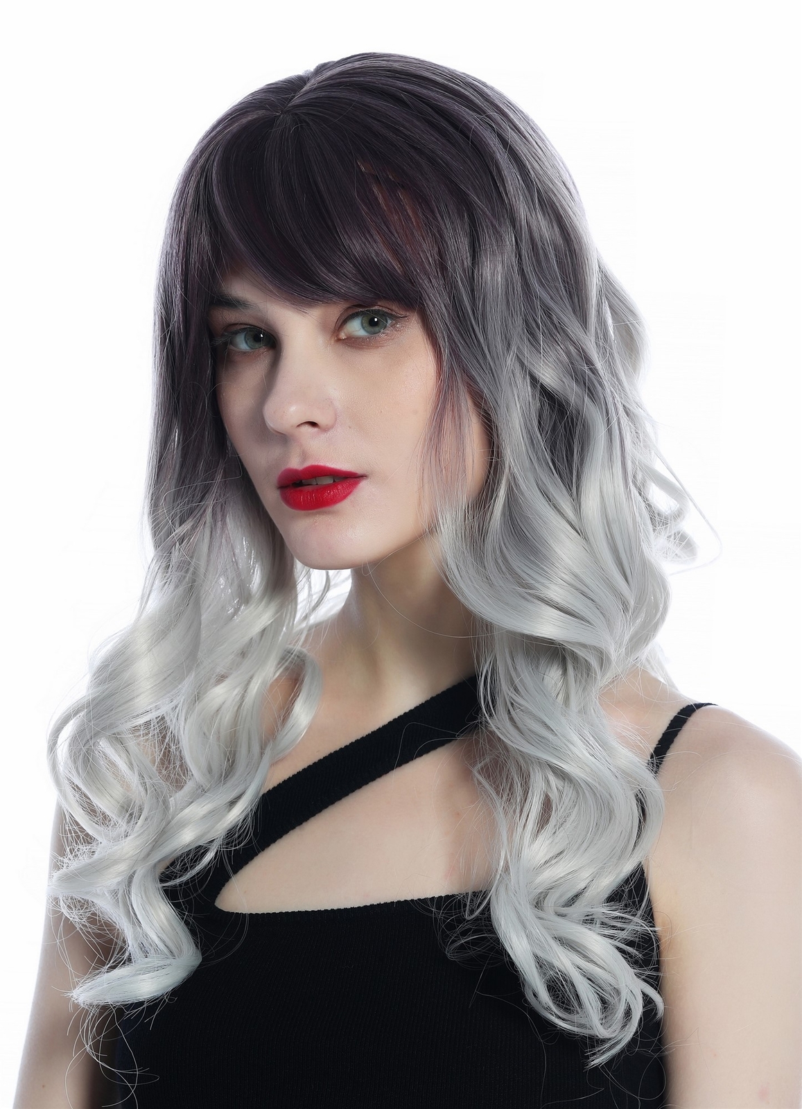 Perruque pour Femme Long Ondulés Raie Ombre Brun Foncé Blond Platine RGF-5904