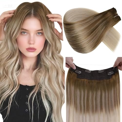 LaaVoo Extension Cheveux Naturel Balayage Blonde Cendrée 35cm 80g Extension Cheveux Naturel Fil Invisible Ombre Brun Clair a Blonde Cendrée Et Blond Platine Extension Fil Cheveux Humain #8/18/60