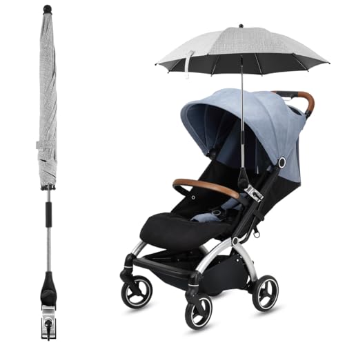 Ombrelle Poussette Universelle Parasol Anti UV 50+ pour Landau Poussette Universelle avec Pince Réglable et Bras Réglable Parapluie Poussette Bébé Confort pour Extérieur Plage Jardin (Gris, 82cm)