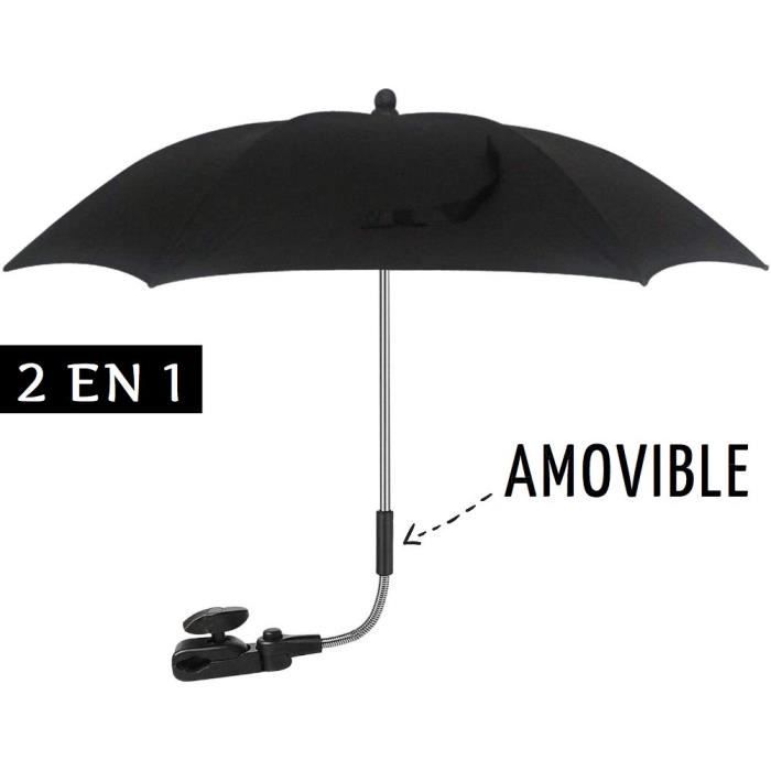 2 EN 1 Anti-UV SPF 50+ Parasol Portatif Ombrelle Universelle Poussette Articulée & Parapluie Pour Enfant - Noir