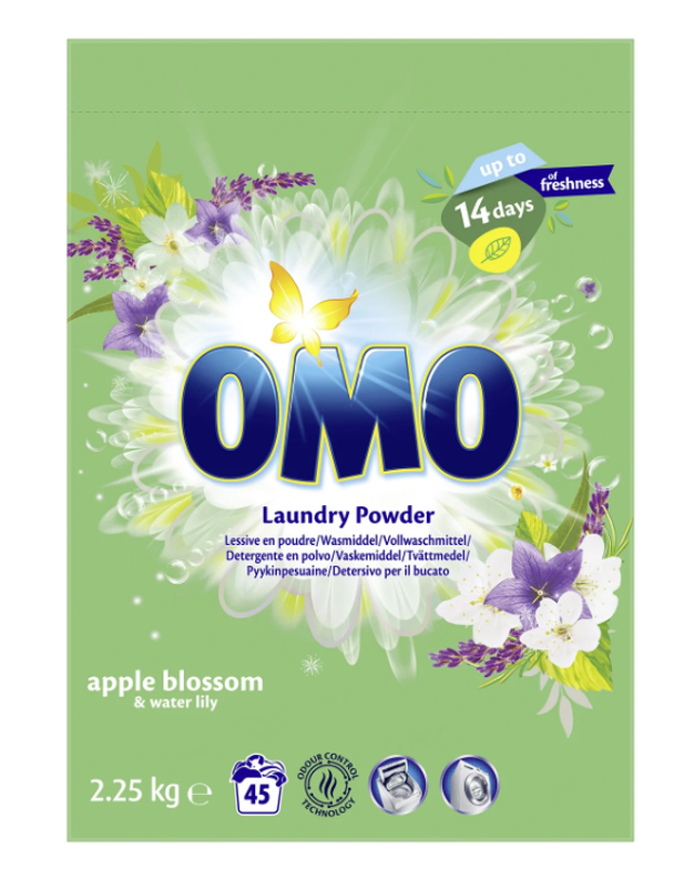 OMO Lessive en poudre parfum fleurs de pommiers et nénuphar - 45 lavages/2,25 kg