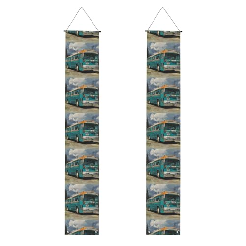 Bannière de porche imprimée « YYHHAOFA Buses on the side of the road » - Pour extérieur et intérieur - 30,5 x 180,3 cm