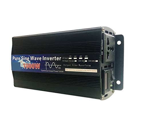 Onduleur à onde sinusoïdale pure, Onduleur à onde sinusoïdale pure 2200W DC 12V à AC 220 230 onduleur puissance continue 1000W onduleur solaire avec USB(Inverter Black)