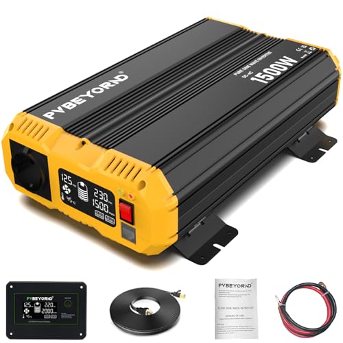 PVBEYORND Convertisseur 12v 220v Pur Sinus 1500W/3000W Convertisseur Pur Sinus Onduleur 12v 220v avec écran LCD et télécommande Externe 3M, Convient aux Camping-Cars et aux alimentations Hors réseau