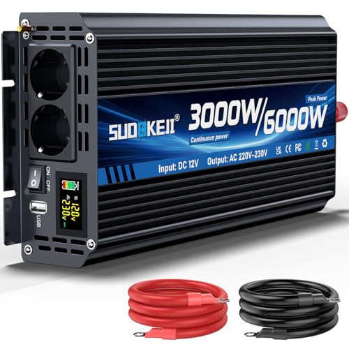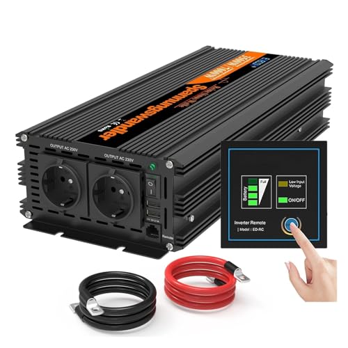 Yinleader Convertisseur 12V / 24V 220V 1500W /3000W Onduleur 12V 230V avec 2 Prises UE et 1 Port USB