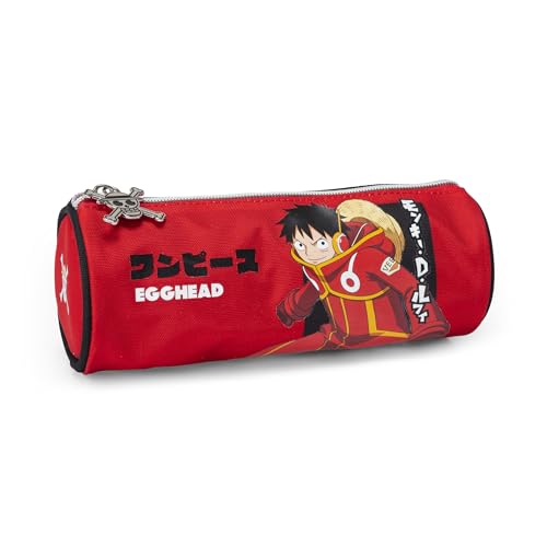 One PIECE - Trousse d'école officielle One Piece, trousse à crayons, légère et compacte, facile à transporter et à ranger dans le sac à dos, avec fermeture éclair, 8 x 22 x 8 cm, rouge, rouge, Casual