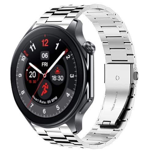 GIOPUEY Bracelet Compatible avec OnePlus Watch 3/2/2R, Acier Inoxydable Sangle Bracelet [Résistant à l'usure] Montre Bracelet - Silver