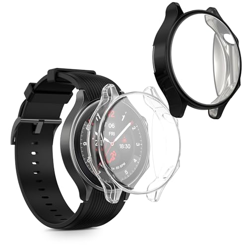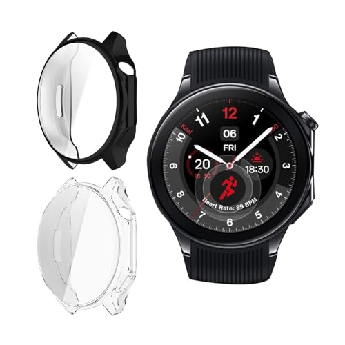 ToVioc [2 Pièces] Coque avec Protecteur d'écran Compatible avec OnePlus Watch 2, [TPU Flexible Coque] [Anti-Antichoc] Shell pour OnePlus Watch 2 - Noir & Transparent