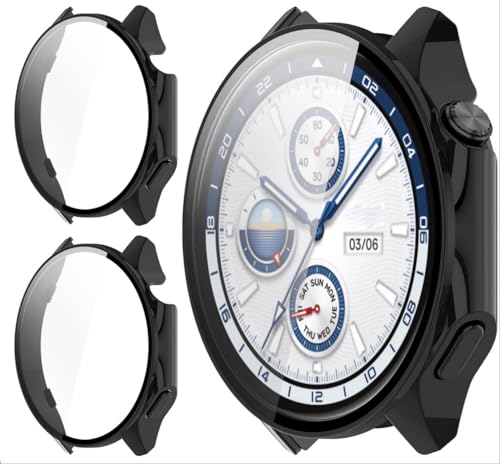 GIOPUEY [2 Pièces Coque Compatible avec OnePlus Watch 2/Oppo Watch X, Film de Protection en Verre + Cadre en Plastique Dur, OnePlus Watch 2/Oppo Watch X Etui - Black+Black