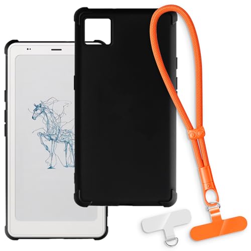 OAGELIM 2-en-1 Coque de Protection avec Dragonne Compatible avec Onyx Boox P6 Pro Color Housse de Téléphone avec Lanyard Détachable, Anti-Dérapante Anti-Perte (Noir + Orange)