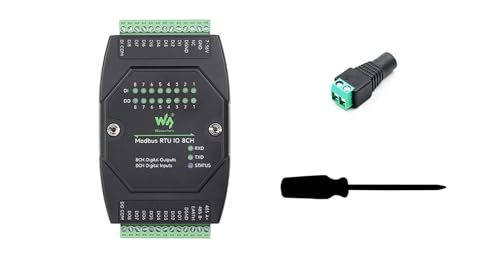 Modbus RTU IO Module 8DI 8DO, Industrial RS485 Digital Input Output Controller, DC 7-36V Supply, Optocoupler Isolation, 500mA Sinking Open-Drain Outputs, DIN Rail Mount, TVS/Fuse Protection