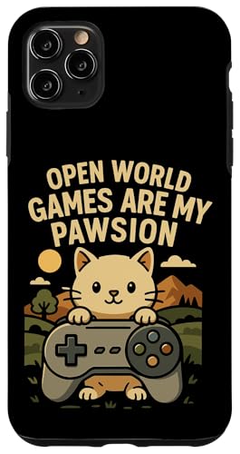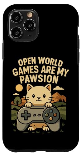 Funny Cat Gamer Pun Open World Jeu vidéo Meme Joke Fan de Chat Coque pour iPhone 11 Pro