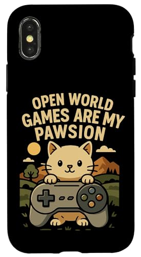 Funny Cat Gamer Pun Open World Jeu vidéo Meme Joke Fan de Chat Coque pour iPhone X/XS
