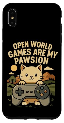 Funny Cat Gamer Pun Open World Jeu vidéo Meme Joke Fan de Chat Coque pour iPhone XS Max