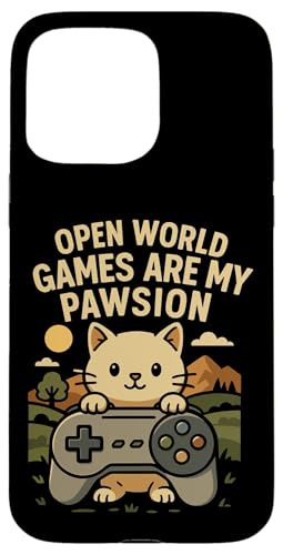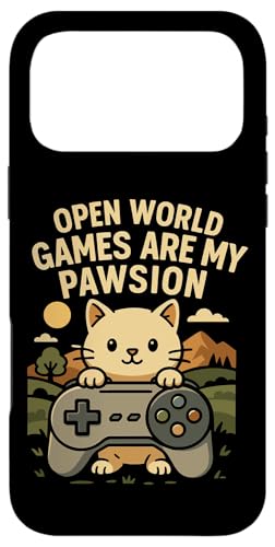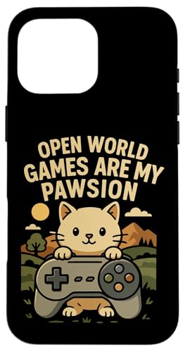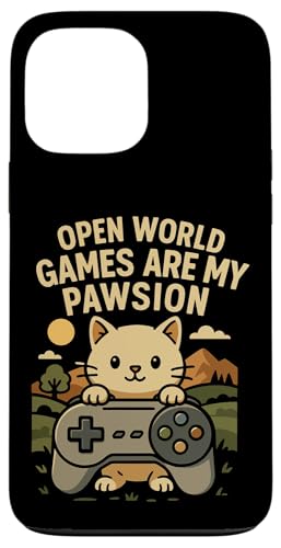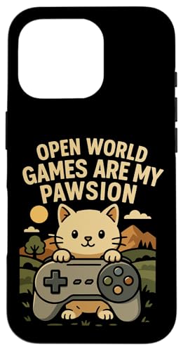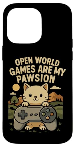 Funny Cat Gamer Pun Open World Jeu vidéo Meme Joke Fan de Chat Coque pour iPhone 16 Pro Max