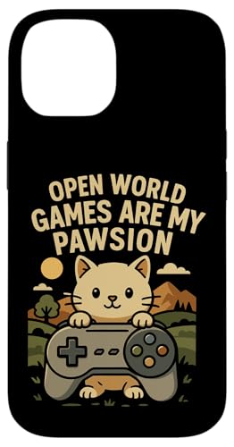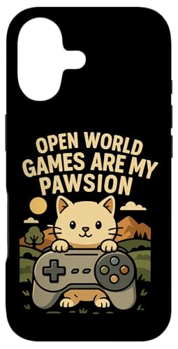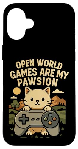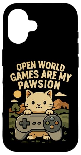 Funny Cat Gamer Pun Open World Jeu vidéo Meme Joke Fan de Chat Coque pour iPhone 16