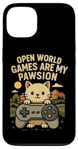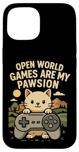 Funny Cat Gamer Pun Open World Jeu vidéo Meme Joke Fan de Chat Coque pour iPhone 15