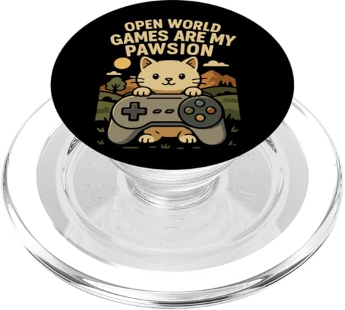 Funny Cat Gamer Pun Open World Jeu vidéo Meme Joke Fan de Chat PopSockets PopGrip Adhésif
