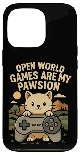 Funny Cat Gamer Pun Open World Jeu vidéo Meme Joke Fan de Chat Coque pour iPhone 13 Pro