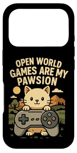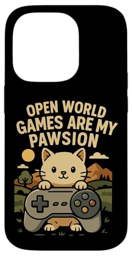 Funny Cat Gamer Pun Open World Jeu vidéo Meme Joke Fan de Chat Coque pour iPhone 16 Pro