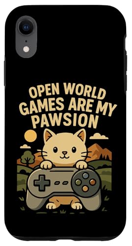 Funny Cat Gamer Pun Open World Jeu vidéo Meme Joke Fan de Chat Coque pour iPhone XR