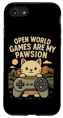 Funny Cat Gamer Pun Open World Jeu vidéo Meme Joke Fan de Chat Coque pour iPhone SE (2020) / 7/8