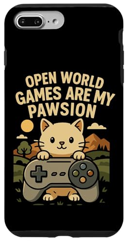 Funny Cat Gamer Pun Open World Jeu vidéo Meme Joke Fan de Chat Coque pour iPhone 7 Plus/8 Plus