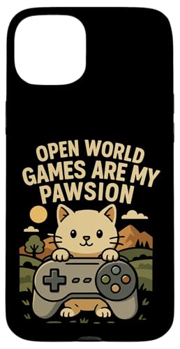 Funny Cat Gamer Pun Open World Jeu vidéo Meme Joke Fan de Chat Coque pour iPhone 15 Plus