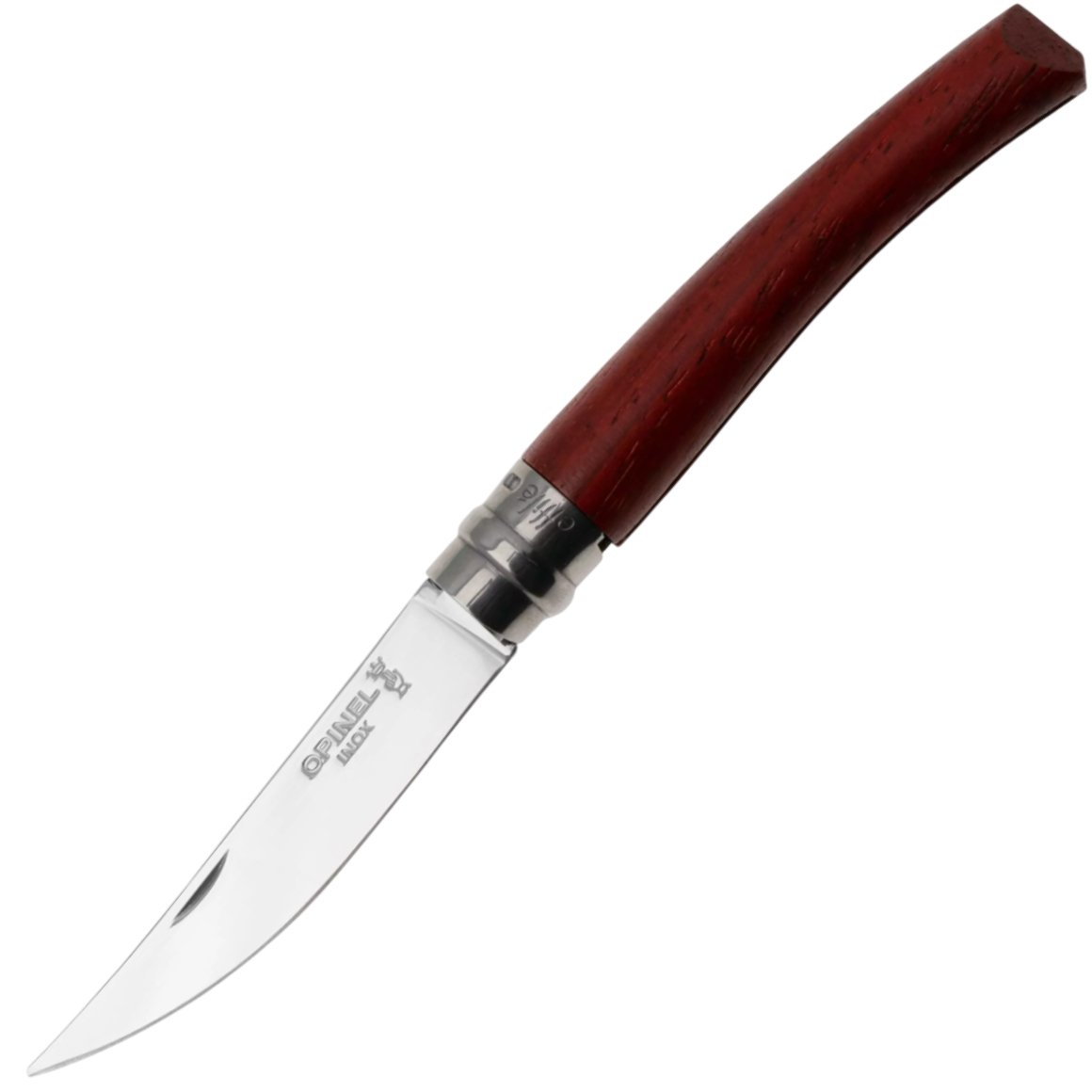 Opinel - N°08 Couteau de Poche Effilé - Lame Finition Poliglace 8 cm Inox, Manche Padouk, Usage Quotidien, Bague de Sécurité Virobloc - Fabrication Française