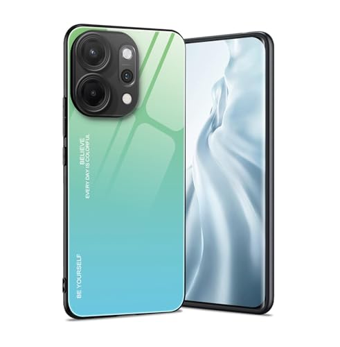 HAOYE Coque pour Oppo Reno 14 (Reno14) 5G, Étui en Gradient Color Back Cover en Verre Trempé Résistant aux Rayures Case, Souple Silicone TPU Anti-Choc Housse(6)