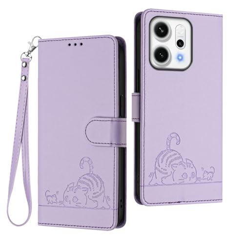 WBWONE Coque Cuir pour Oppo Reno 14 (Reno14) 5G Portefeuille Magnétique Étui RFID Housse, Fentes Cartes/Support Pliable Motif Chat Design - Violet
