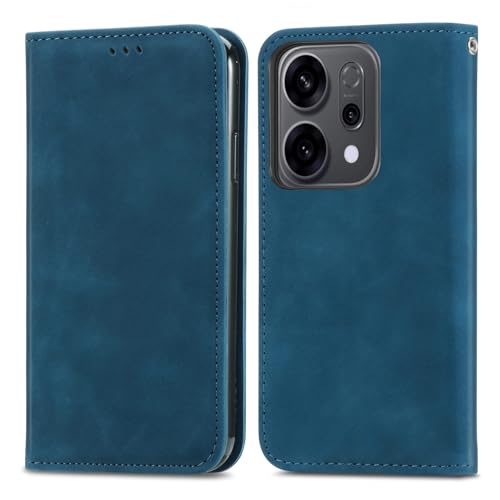 Dedux Rétro Coque pour Oppo Reno 14 Pro 5G, Etui Portefeuille en Cuir Fermeture Magnétique Porte Folio pour Cartes. Bleu