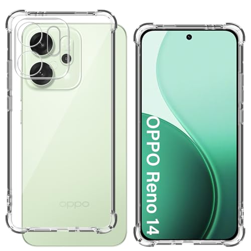ivoler Coque pour Oppo Reno 14 5G avec 2 Pièces Verre Trempé, Ultra Transparent Étui de Protection en Silicone Antichoc avec Coins Renforcés, Mince Souple TPU Anti-Rayures Bumper Housse