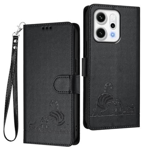 WBWONE Coque Cuir pour Oppo Reno 14 (Reno14) 5G Portefeuille Magnétique Étui RFID Housse, Fentes Cartes/Support Pliable Motif Chat Design - Noir