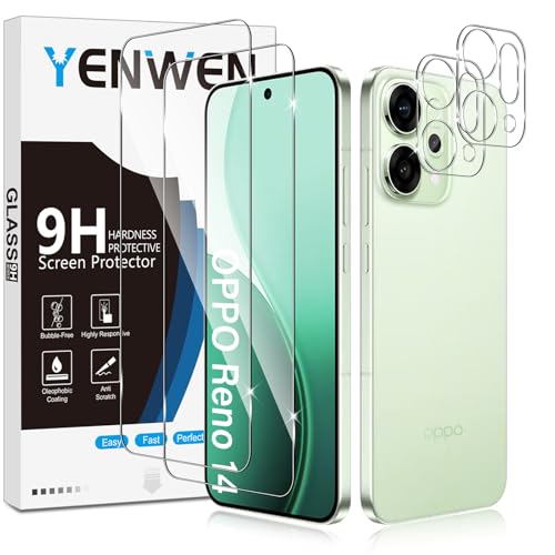 Yenwen Verre Trempé pour OPPO Reno 14 5G Protection Ecran, 2 Pièces Protection écran Film et 2 Pièces Caméra Arrière Protecteur, Anti Rayures, Dureté 9H Glass, Sans Bulles