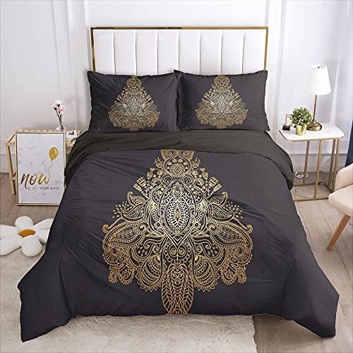 LUYAPOND Housse de Couette 240 x 260 Style de Mandala en Or Noir, Parure de Lit 3 Pièces avec Hypoallergénique Housse de Couette et 2 Taies d'oreiller 65x65 cm pour Ado Adulte