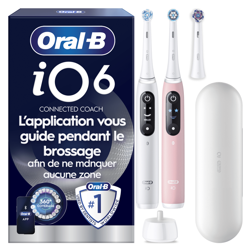 Oral-B iO 6 Lot De 2, Brosses À Dents ÉlectriquesRose et Blanche, 2 Brossettes