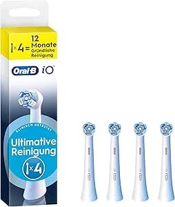 Oral-B iO Lot de 4 brossettes de rechange pour brosse à dents électrique Oral-B iO, blanches, pour nettoyage en profondeur