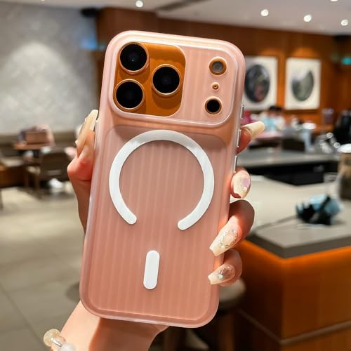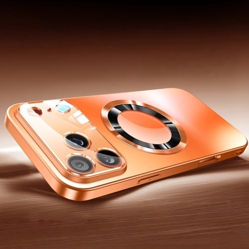 GHVWYX Coque de téléphone en Verre dépoli avec Grand Objectif pour iPhone 17 Air, 16, 15, 14, 13 Pro Max, Chargement magnétique sans Fil, Orange, pour iPhone 15