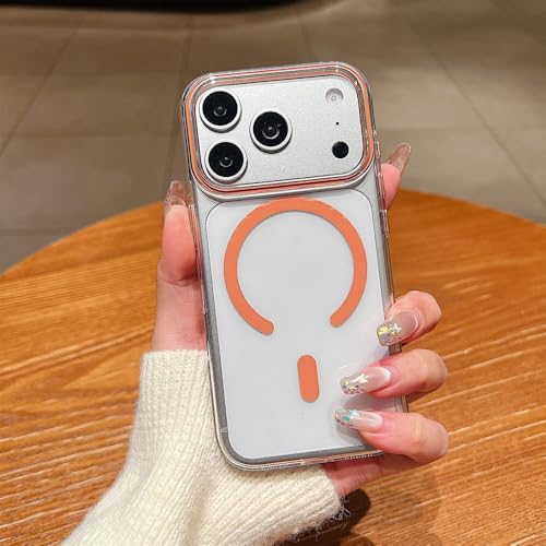 SETNGB Coque Transparente en Polycarbonate avec Chargement magnétique sans Fil pour iPhone 17, 16, 15, 14, 13 Pro Max, 17 Air, 16, 15, 14 Plus, Orange, Compatible iPhone 15 Pro