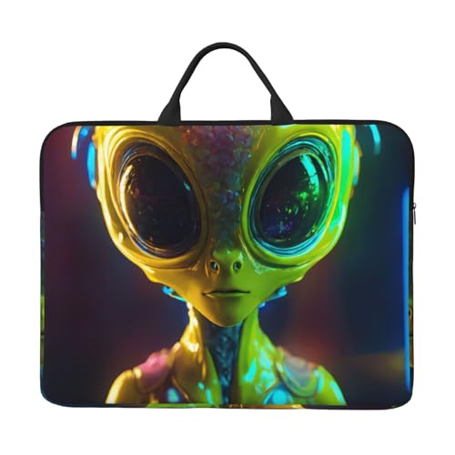 Housse pour ordinateur portable 14" avec fermeture éclair Motif vaisseaux spatiaux Alien Planet Vert