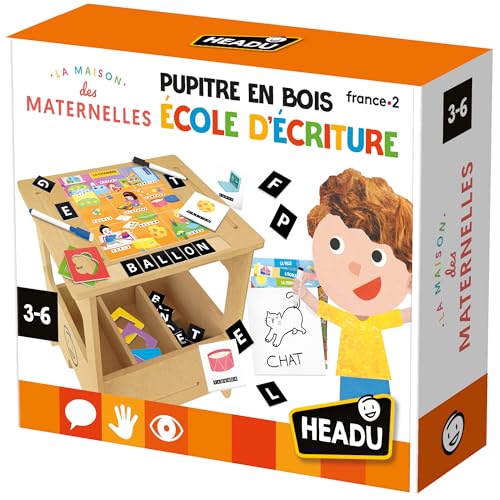 Headu - Pupitre en Bois École D’Écriture - Je Dessine Et J’Écris Plus De 100 Mots avec La Méthode en 7 Étapes | Jeu Educatif 3 4 5 6 Ans, Jeu pour Apprendre à Lire et à Écrire, Cadeau Enfants