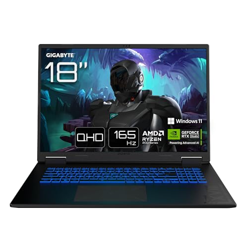 GIGABYTE Gaming A18 Ordinateur Portable - 18“, 165Hz WQXGA, AMD Ryzen 7 260, RTX 5060, 32Go DDR5 5600MHz, SSD Gen4 1To, Windows 11 Home, Garantie 2 Ans, Dolby Atmos, Gaming A18 3VHK3FRC64SH