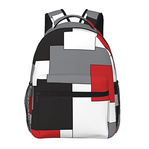 Blanc Gris Noir Et Rouge Irrégulier Géométrique Élé Casual Sac À Dos Sac À Main Pour Les Femmes Personnalisé Ordinateur Portable Sacs À Dos Avec Plusieurs Poches Ordinateur Sac À Dos Pour Le Tra