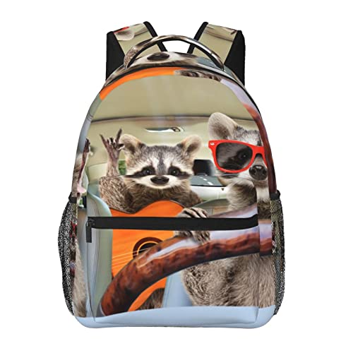 Raton laveur Conduite Voiture Drôle Élé Casual Sac À Dos Sac À Main Pour Les Femmes Personnalisé Ordinateur Portable Sacs À Dos Avec Plusieurs Poches Ordinateur Sac À Dos Pour Le Travail Voyage