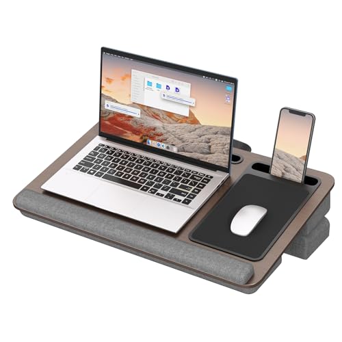 PUTORSEN Laptop Desk Convient à Un Ordinateur Portable jusqu'à 17,3 Pouces, Bureau Portable avec Coussin d'oreiller et Tapis de Souris pour Ordinateur Portable MacBook Tablette, Marron