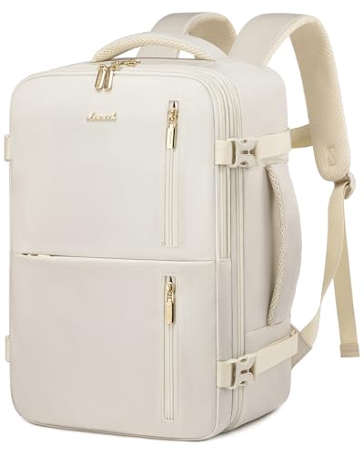 LOVEVOOK Sac a Dos Voyage Avion 40x30x20, Bagages Cabine, Bagage à Main Valise 24L, Port USB, Femme Homme, Ordinateur Portable 14 Pouces, Travail, Affaires, Beige