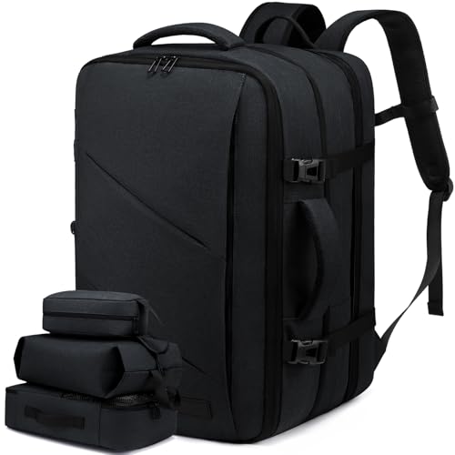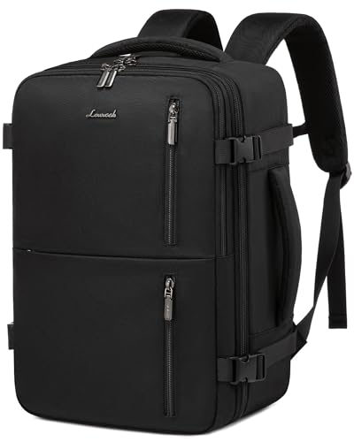 LOVEVOOK Sac à Dos Cabine Grand 50L, Sac à Dos Voyage Avion Antivol, Bagage à Main Homme Femme, Sac Ordinateur Portable 18 Pouces Travail Résistant Aux Éclaboussures Noir
